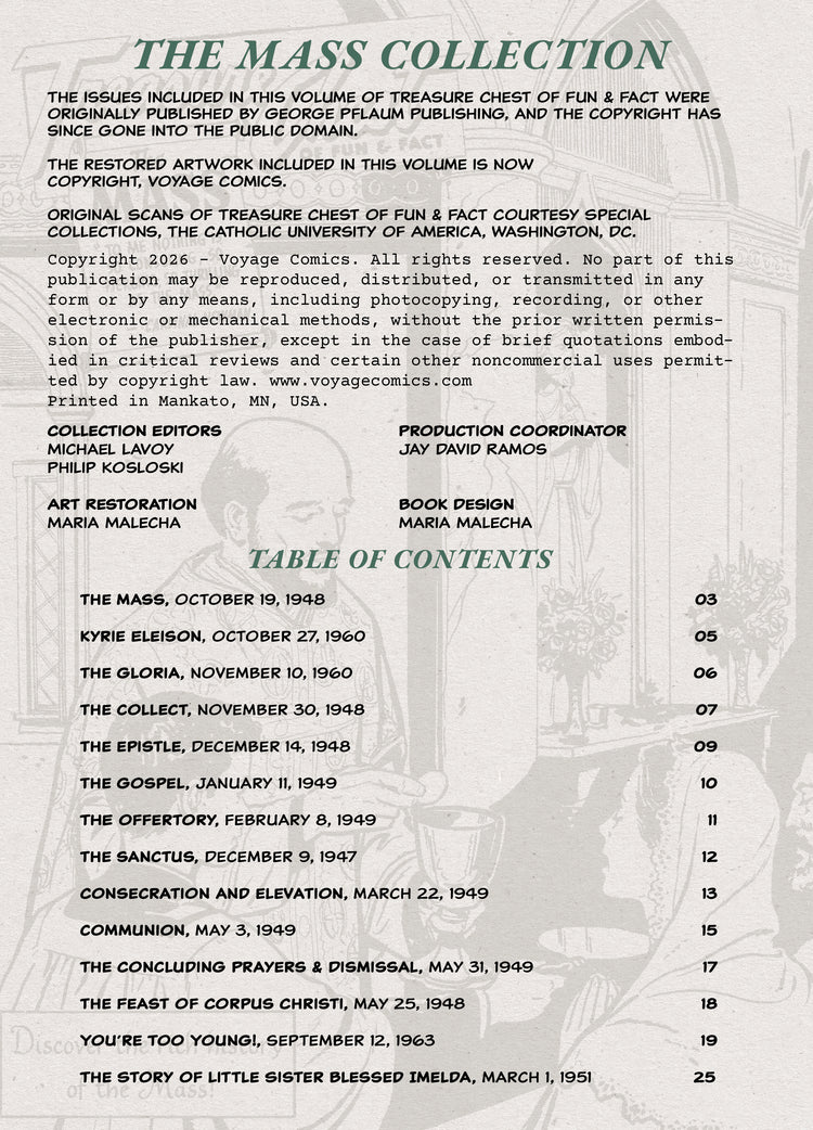 [{"id":463711567895,"handle":"ages-8-12","updated_at":"2026-02-08T06:16:59-06:00","published_at":"2024-05-16T09:09:58-05:00","sort_order":"alpha-asc","template_suffix":"","published_scope":"global","title":"Ages 8-12","body_html":""},{"id":263318274071,"handle":"all-products","updated_at":"2026-02-08T06:16:59-06:00","published_at":"2021-12-06T12:26:51-06:00","sort_order":"manual","template_suffix":"","published_scope":"global","title":"All Products","body_html":""},{"id":467410845719,"handle":"all-saints-day-sale","updated_at":"2026-02-08T06:16:59-06:00","published_at":"2024-10-31T13:56:22-05:00","sort_order":"manual","template_suffix":"","published_scope":"global","title":"All Saints Day Sale","body_html":"\u003cp style=\"text-align: center;\"\u003e10% off All Saint Comics \u0026amp; Books!\u003c\/p\u003e\n\u003cp style=\"text-align: center;\"\u003eDiscount is taken off automatically at checkout.\u003c\/p\u003e\n\u003cp style=\"text-align: center;\"\u003eSale ends on Sunday, November 3 at 11:59 PM CST\u003c\/p\u003e"},{"id":272115630103,"handle":"bulk-order","updated_at":"2026-02-08T06:16:59-06:00","published_at":"2022-11-12T09:34:08-06:00","sort_order":"manual","template_suffix":"","published_scope":"global","title":"Bulk Order","body_html":"\u003cp\u003eVoyage offers bulk discounts on the following products. You can combine different products in order to secure a specific bulk order price.\u003cspan\u003e \u003c\/span\u003e\u003c\/p\u003e\n\u003cp\u003e\u003cstrong\u003eBulk discounts are available for parishes, schools and other groups.\u003c\/strong\u003e\u003c\/p\u003e\n\u003cp\u003ePlease\u003cspan\u003e \u003c\/span\u003e\u003ca href=\"https:\/\/shop.voyagecomics.com\/pages\/contact\" aria-label=\"undefined (opens in a new tab)\" target=\"_blank\"\u003econtact us\u003c\/a\u003e\u003cspan\u003e \u003c\/span\u003eor send an email at orders@voyagecomics.com\u003cstrong\u003e to place your bulk order!\u003c\/strong\u003e\u003c\/p\u003e\n\u003cdiv class=\"has-text-align-center\" style=\"text-align: center;\"\u003e\n\u003cstrong\u003e\u003c\/strong\u003e\u003cbr\u003e\n\u003c\/div\u003e"},{"id":145689804834,"handle":"comic-books","title":"Catholic Comic Books","updated_at":"2026-02-08T06:16:59-06:00","body_html":"","published_at":"2019-08-26T11:04:20-05:00","sort_order":"created-desc","template_suffix":"","disjunctive":false,"rules":[{"column":"tag","relation":"equals","condition":"Comic Books"},{"column":"product_category_id","relation":"not_equals","condition":"me-1-2"}],"published_scope":"web","image":{"created_at":"2021-03-16T20:22:50-05:00","alt":"Voyage - Catholic Comic Books Collection","width":1720,"height":847,"src":"\/\/shop.voyagecomics.com\/cdn\/shop\/collections\/starter_package.jpg?v=1729192360"}},{"id":459323211799,"handle":"black-friday-2023","updated_at":"2026-02-08T06:16:59-06:00","published_at":"2023-11-16T07:53:57-06:00","sort_order":"created-desc","template_suffix":"","published_scope":"global","title":"Christmas Shipping Deadlines - Order by Dec. 14","body_html":"\u003cmeta charset=\"utf-8\"\u003e\n\u003cdiv style=\"text-align: center;\"\u003eLooking for a Christmas Present?\u003cspan data-mce-fragment=\"1\"\u003e\u003c\/span\u003e\n\u003c\/div\u003e\n\u003cdiv style=\"text-align: center;\"\u003e\u003c\/div\u003e\n\u003cdiv style=\"text-align: center;\"\u003eMake sure you place your order by the following days:\u003c\/div\u003e\n\u003cdiv style=\"text-align: center;\"\u003e\u003c\/div\u003e\n\u003cdiv style=\"text-align: center;\"\u003eUSPS Ground Advantage — Dec. 14\u003c\/div\u003e\n\u003cdiv style=\"text-align: center;\"\u003ePriority Mail — Dec. 17\u003c\/div\u003e\n\u003cdiv style=\"text-align: center;\"\u003ePriority Mail Express — Dec. 19\u003c\/div\u003e"},{"id":260574904343,"handle":"easter-sale","updated_at":"2026-02-08T06:16:59-06:00","published_at":"2023-03-02T08:32:46-06:00","sort_order":"created-desc","template_suffix":"","published_scope":"web","title":"Easter Sale 2024","body_html":"\u003cmeta charset=\"utf-8\"\u003e\n\u003cdiv style=\"text-align: center;\" data-key=\"119\" data-mce-fragment=\"1\"\u003eGet up to 90% off select products\u003c\/div\u003e\n\u003cdiv style=\"text-align: center;\" data-key=\"125\" data-mce-fragment=\"1\"\u003e\u003cspan data-key=\"126\" data-mce-fragment=\"1\"\u003e\u003cspan data-slate-content=\"true\" spellcheck=\"true\" data-mce-fragment=\"1\"\u003eSale ends on March 12 at 11:59pm CST.\u003c\/span\u003e\u003c\/span\u003e\u003c\/div\u003e\n\u003cdiv style=\"text-align: center;\" data-key=\"1992\" data-mce-fragment=\"1\"\u003e\u003cbr\u003e\u003c\/div\u003e\n\u003cdiv style=\"text-align: center;\" data-key=\"133\" data-mce-fragment=\"1\"\u003e\n\u003cspan data-key=\"134\" data-mce-fragment=\"1\"\u003e\u003cspan data-slate-content=\"true\" spellcheck=\"true\" data-mce-fragment=\"1\"\u003eSupplies are LIMITED!\u003c\/span\u003e\u003c\/span\u003e\u003cspan data-key=\"134\" data-mce-fragment=\"1\"\u003e\u003cspan data-slate-content=\"true\" spellcheck=\"true\" data-mce-fragment=\"1\"\u003e\u003c\/span\u003e\u003c\/span\u003e\n\u003c\/div\u003e\n\u003cdiv style=\"text-align: center;\" data-key=\"133\" data-mce-fragment=\"1\"\u003e\n\u003ca href=\"https:\/\/shop.voyagecomics.com\/collections\/new-products\" data-slate-inline=\"true\" data-slate-node=\"element\"\u003e\u003cspan data-slate-node=\"text\"\u003e5% Off New Products\u003c\/span\u003e\u003cspan contenteditable=\"false\"\u003e\u003c\/span\u003e\u003c\/a\u003e\u003cspan data-slate-node=\"text\"\u003e \u003c\/span\u003e\n\u003c\/div\u003e\n\u003cdiv style=\"text-align: center;\" data-key=\"133\" data-mce-fragment=\"1\"\u003e\n\u003ca href=\"https:\/\/shop.voyagecomics.com\/collections\/books\" data-slate-inline=\"true\" data-slate-node=\"element\"\u003e\u003cspan contenteditable=\"false\"\u003e\u003c\/span\u003e\u003cspan data-slate-node=\"text\"\u003e10% Off Books\u003c\/span\u003e\u003cspan contenteditable=\"false\"\u003e\u003c\/span\u003e\u003c\/a\u003e\u003cs