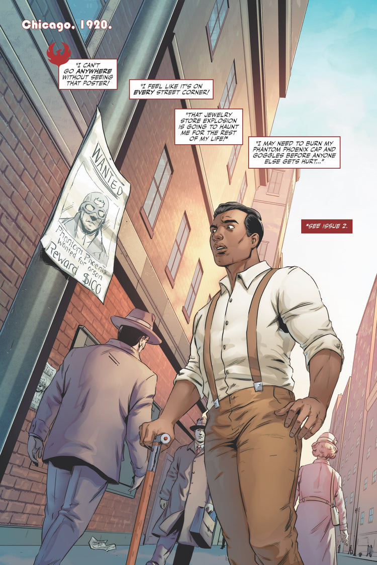 A wanted man, Martin Claver hangs-up his suit and is unable to protect the city of Chicago as the Phantom Phoenix. Everyone is searching for him, trying to solve the puzzle of the Phoenix’s true identity.